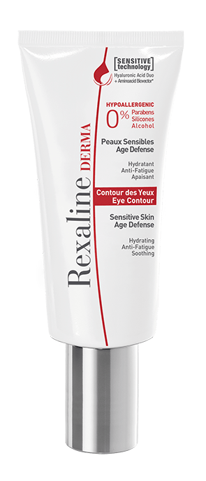 DERMA Eye Contour Sensitive Skin Age Defense – oční krém proti stárnutí citlivé pleti očního okolí. Vyhlazuje jemné linky a vrásky, hydratuje a chrání jemnou kůži v očním okolí. Redukuje také otoky a kruhy pod očima a zároveň zmírňuje pocit podráždění. (680 Kč/15 ml)