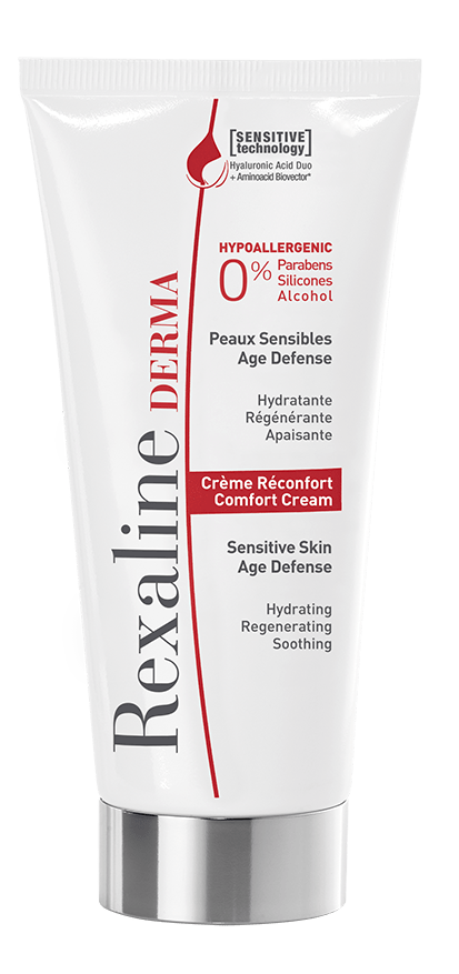 DERMA Comfort Cream Sensitive Skin Age Defense – krém proti stárnutí citlivé pleti. Skončete se zarudlou a napjatou pletí. Tento nový krém na obličej od značky Rexaline je exkluzivním řešením pro citlivou pleť. (820 Kč/50 ml)