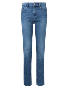 Džíny s pohodlným pružným středně vysokým pasem. Ženám vykouzlí úzkou siluetu až ke kotníkům.
